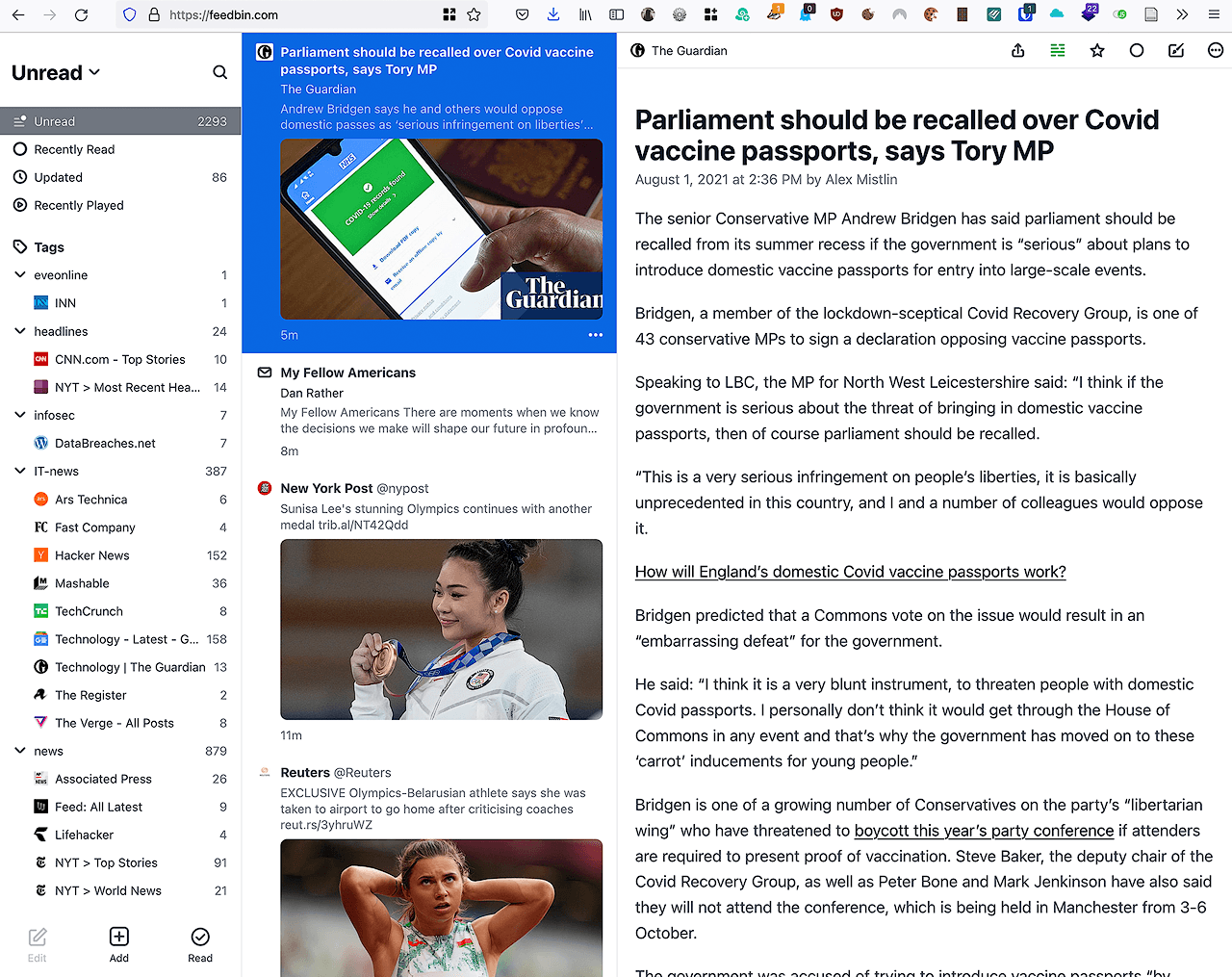 Feedbin Feedreader quick review